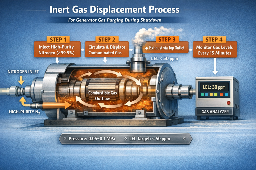 In hydrogen-cooled units, worn seals or improper pressure balance can cause hydrogen leakage. When hydrogen mixes with air within certain concentration ranges, explosion risk increases significantly.